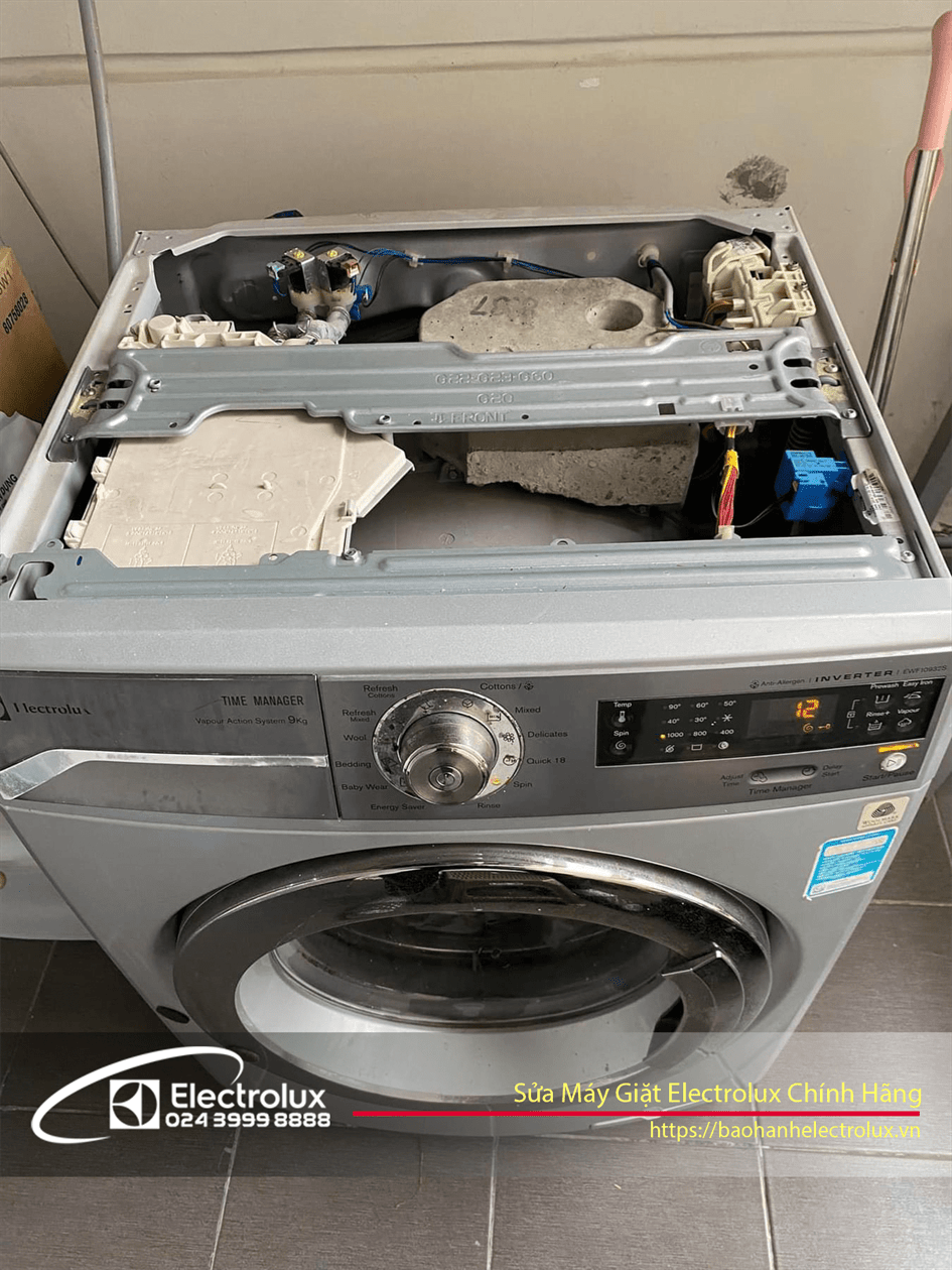 - Kiểm tra bo mạch, thay thế các linh kiện liên quan nguồn cấp cho các thành phần. Liên hệ trung tâm bảo hành Electrolux để được sửa chữa máy giặt Electrolux